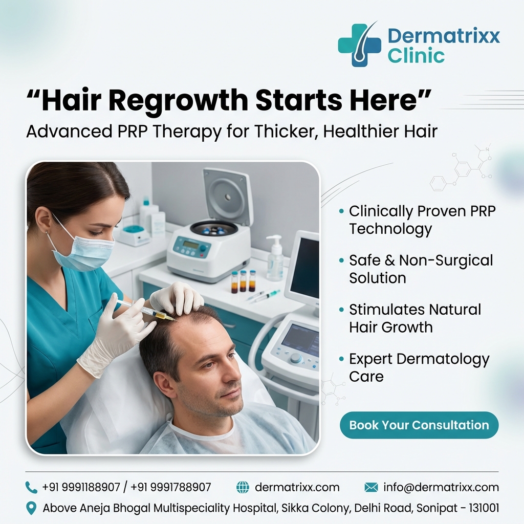 At Dermatrixx Clinic, advanced skin and hair solutions are delivered with expert care, ensuring confidence and satisfaction for every client in Sonipat. If you are considering PRP hair treatment, understanding how it works, who it is suitable for, and what results you can expect can help you make an informed decision.
